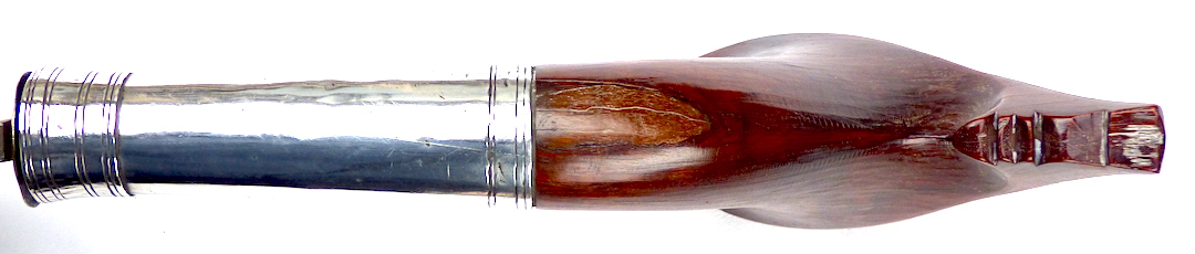 Here are pictures of an earlier non-junggayang form. The "crest" is barely apparent and the beak is a simple "point." Compare the width of the proximal part of the hilt where the palm of the hand would sit. In this case and in the original post, that area is unusually wide compared with later hilts. In part, this has to do with the manner in which the beak is carved on later hilts, with the hook of the "beak" being longer and going deeper into the pommel on later examples.The change on later hilts may have had something to do with martial art styles, because the longer hook enables the little finger to engage the hilt more securely, facilitating a long-handle swing and thereby offering greater angular momentum for a blow. The slight change in pommel width for subsequent hilts might also have offered a different form of grip for the hand, but a Moro martial arts person may have some ideas on this.