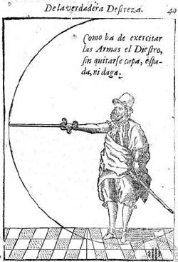 Well observed Keith! The destreza is much different in that there is much less contact, more traversing (circling) one guard (right angle, point and shoulder in line). There is less blade to blade contact. With the small sword, more dynamic, faster and more blade to blade, parrys etc. The balance on this espadin is remarkable. Blade 31.5". |
