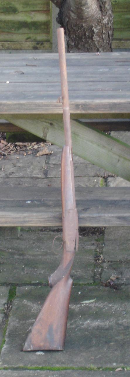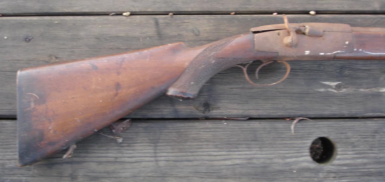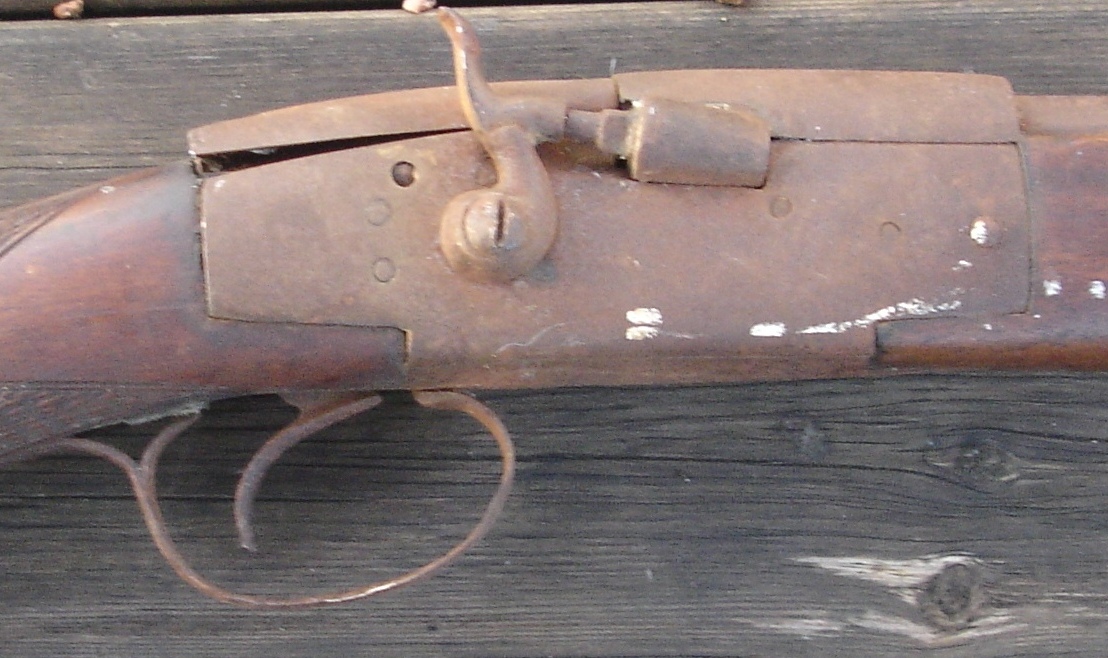 As noted, this example posted by Jack seems to have been a sporting shotgun, which seems unusual as mostly double barrel versions were the norm. Also as such sporting guns were made by notable gun makers with ornate and signed locks, this crude assembly is entirely out of character.