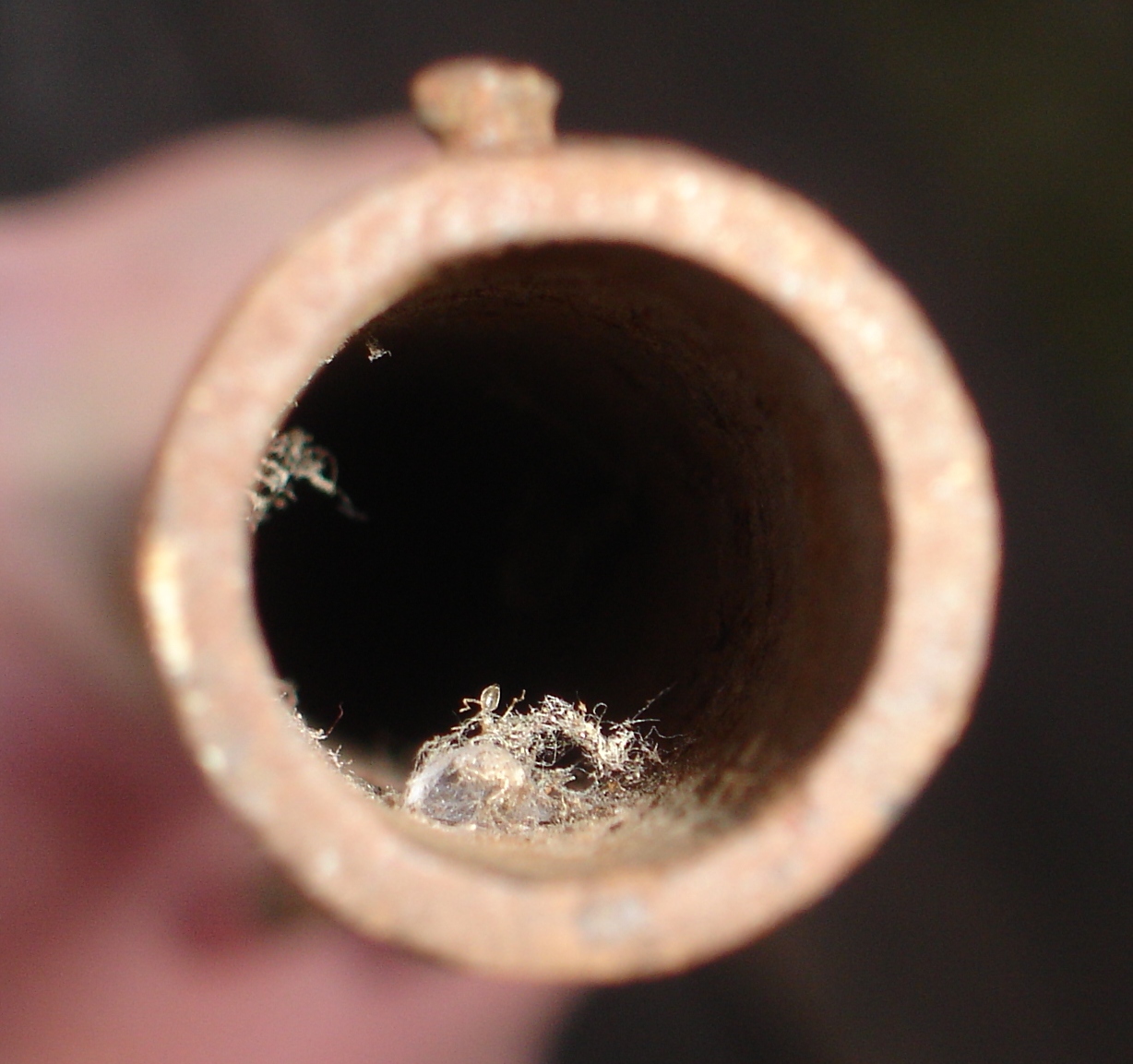 Here my impressions (again with the caveat that I’m no firearms expert). You have another cap lock here and it appears to be a muzzle loader. I can’t be sure about the muzzle loader part because the breach looks really, really odd. Since the Roland White cartridge patient expired on Dec 11, 1869 and the Mau Mau uprising happened 1920-1963, if the insurrectionists were using muzzle loading caplocks, they were sadly outgunned because the Brits were certainly armed with breach loading cartridge firearms. Your bore photo shows that your long gun is a smoothbore and, judging by the grip (with checkering on it), it began life as a sporting arm. I think that you should take your photos and any letters/serial numbers to a shotgun expert for ID. You should also ask about dismantling the gun so you can stop the live rust on the steel parts.