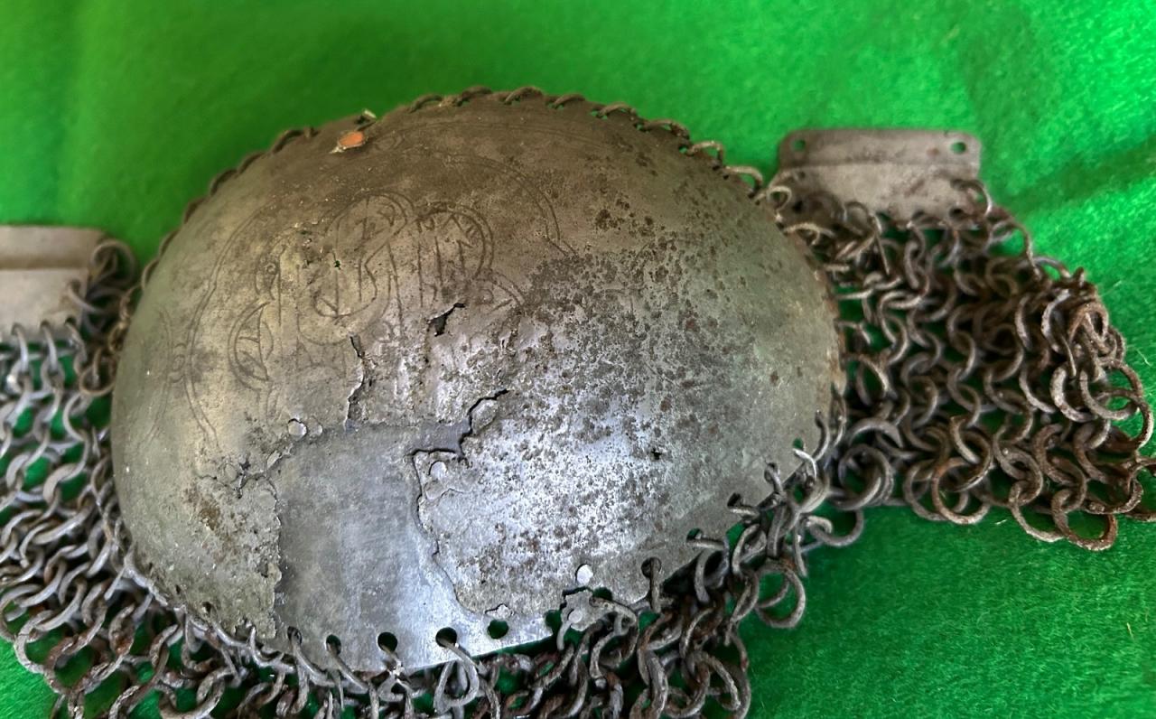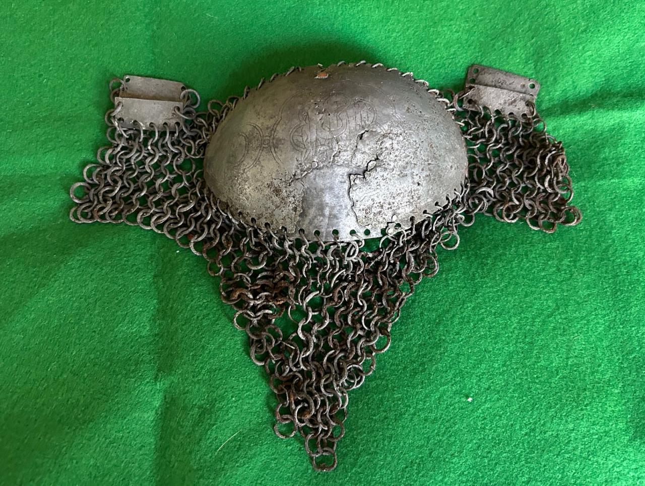 Here is an Islamic knee guard for comment. It is missing the thigh plates and the cup itself has been broken and subsequently reinforced with another plate. The riveted mail on the sides and bottom is still there. I understand that in the absence of a dedication, it is extremely hard to attribute 15th-16th century pieces among the Mamluks, Ottomans, Aq Qoyunlu, etc. as they shared almost identical mail and plate armor per Robinson. Even the Askeri Museum, usually very quick to identify anything that may have originated within the Ottoman Empire as Ottoman is cautious when it comes to knee guards, with most just described as Islamic, and a few as Timurid or Aq Qoyunlu.