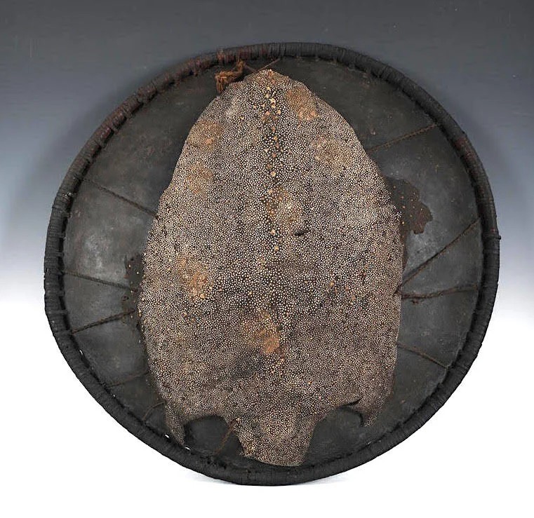 Yes, these Sumba shields are always large so far I know. In "Traditional Weapons of the Indonesian Archipelago" are pictured three examples, 52, 66,5 and again 66,5 cm diameter. And yes, they are made from water buffalo hide. And they are fairly rare. Here you can see a few more examples: https://www.artoftheancestors.com/bl...-janet-hoskins Regards, Detlef Last edited by Sajen; 1st March 2026 at 09:16 PM. |