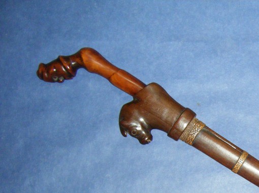 Not until you mentioned it, lol.You nailed it again Sajen! I thought it to be African ,even though the hand holds on the shield didn't strike me as typical African. I had thoght about taking it to Baltimore, but now thanks to you, I'm keeping it;so much about getting older and letting some things go!