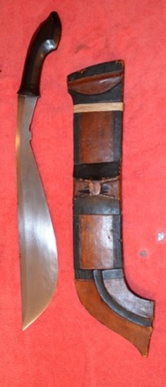 It seems that we have Lumad time on the forum! A Mandaya bolo was long on my personal wish list so I've bought this example recently so only the seller pictures for the moment. The scabbard has an inscription on both sides, one says "Bolo, Moro tribe, Mindanao, PI" on the other side I am not able to read the first name, sadly since I think to find out more when I know the the first name from the Major Bennett who seems to has collected this piece when he was positioned on the Philippines, maybe someone from you will be able to decipher his first name. The handle is a little bit unusual when I compare it with other Mandaya bolos I've seen before but guess it's original or at least long together with the blade. But I guess that the chain is a later addition but maybe still from the original owner, what you think? I will post my own pictures soon as I have received it and have been able to give it a little TLC.