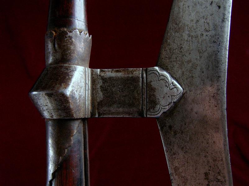 One member suggested that this since the blade is separated from its neck, (but I am not sure what that means) that it could be pre-1800 because from 1800 on, they've been making blade assemblies one piece. Chota Nagpur tribes from central India.