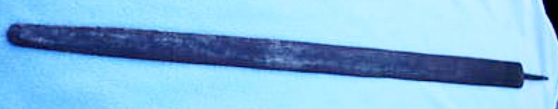 ....those advertisers get everywhere Has anyone noticed the tang ? The 'grooves' suggest to me that the tang may originally been 'fixed' with resin. The grooves would provide a good 'key' to prevent movement. I too think likely a Takouba blade ....possibly, even 'locally made'. It is possible the dark patination was caused by the blade being quenched in cocconut oil....I read 'somewhere' that this oil gives a dark layer ...which also helps prevent rust...so again it may be more recent than it looks. Fortunately no-one was suckered in and bought this. Regards David |