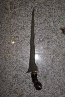 I bought a keris in 1994 with a Jambi hilt but I don't know if the sheat and the blade of the same origin. The blade is a 9-luk one with what I think is Blarak Ngirid pamor. On the front side there are same forge mistakes. Maybe some from you have experience with keris from this area and can help me. Regards, Detlef |