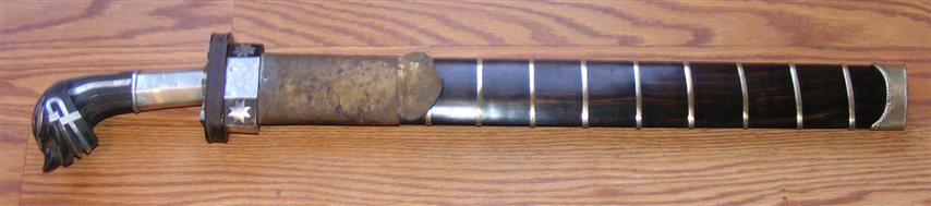 robert, here are two pics from erik farrow once again. the metal hoops on the scabbard are aluminum. thanks. |