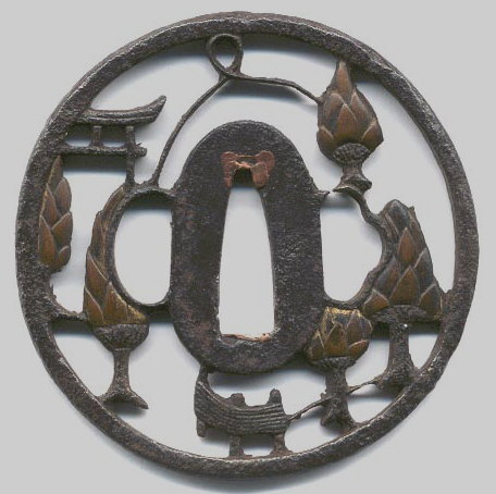 This Tsuba is mounted on a 1st generation Wakizashi by ShigeTaka,cannot nail a school or period to it, any ideas?.