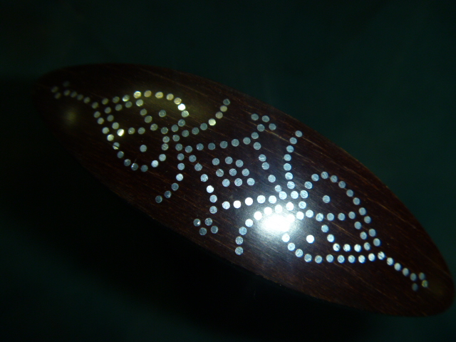 Salaams ~Now here's a funny thing !his hilt has a very nice feel to it... but I cannot decide what it is made from since the edges seem to be going white... or light... as happens with Rhino but this has a feel more of Bakelite or carbon(plastic) or resin ..yet it seems to be horn. The old chap that brought it has said it is half Rhino... meaning he thinks it has Rhino in it... tiny shavings mixed in the mix ...so to speak... but I have me doubts !! Very expensive though !!