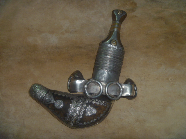 An interesting question remains over the reason for the bend in the Omani Khanjar scabbard ~ Why is it thus bent? at about 90 degrees? I always thought it was design and balance. It appears to have a hidden meaning though I am told I can discover the real reason by lining a certain "in the know" dealers hand with silver... It had better be a decent story !