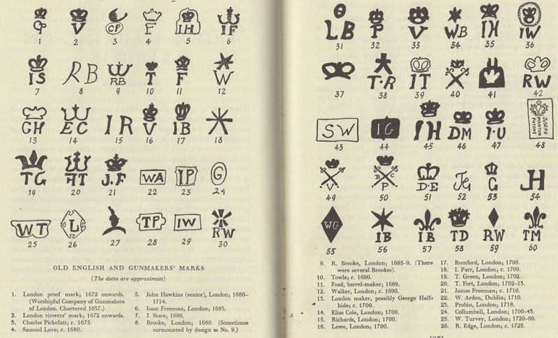 Yes the barrel does turn off The Worshipfull Company of Gunmakers was incorporated in 1637 and consisted of 125 gunmakers responsible for proving and marking all types of guns both English and continental and for enforcing regulation. Proof firing was carried out by individual gunmakers on their own premises although a collective proof house was established in Whitehall in 1715 . Therefore prior to this each gunmaker must have had their own version of the crown / GP stamp . On the subject of proof marks / makers marks in general here is a selection that might be useful for reference . Last edited by Raf; 28th June 2015 at 11:50 AM. |