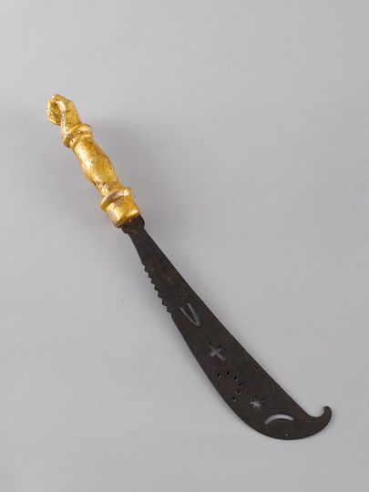 My immediate reaction is that west African weapons must be related inter tribally as borne out by the similarities in these golock styles...The tendency to call them ceremonial is always there but my thought is that ceremonial may extend at least to executions... which were a sort of ceremonial Indeed if they were only ceremonial why would they poison the blades..Thus I suggest these also were used in battle. The depiction of a lion is interesting as being the big cat favoured by the tribal kings and not as once suggested as some sort of spin back from the Portuguese influence in the Indian Ocean and copied or taken from Kastane in Ceylon. The sword from http://www.vikingsword.com/vb/showth...8&page=2&pp=30 at #52 is shown below as fig 11 and is clearly a Lion Head but the accompanying literature assumes an Indian Ocean influence which of course it is CERTAINLY not. In that case it is on a hilt and below it appears on hilts and on the blade in cut out form. It is suggested that in the case of West African designs this is a home grown device. In looking at the cross geometry + cut into the blade; I include the Black Crab quillons device favoured by the Portuguese shown below but am unable to say if this is co-incidental or copied in regard to the tribal blade. Religion seems a far off indicator and knowing the several uses of the cross format I tend to rule that out; although black magic "as a religion" may rule this straight back in !! So some artwork~ Last edited by Ibrahiim al Balooshi; 28th August 2017 at 01:59 PM. |