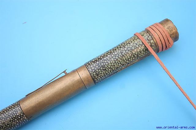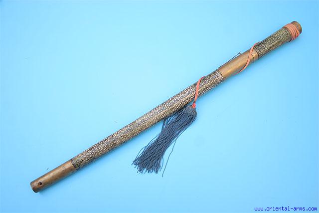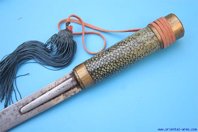 I bought this at auction a maybe a month ago, but have only recently gotten around to taking pics. I have no idea what this is. It was sold as Mongolian, and, maybe? The hilt and scabbard seem to be wrapped in shagreen. And there is a kind of button lock, that releases it from the scabbard when pressed. It seems to have some age I think it might be something like a trousse set, but one would normally expect a pair of chopsticks to be included in that. What have I got here? Thanks in advance Leif |
