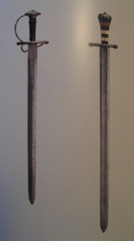 the first Katzbalger is dated by Uhlemann 1530 in kosbare blankwaffen (1968), in 1991, this same katzbalger is dated by Haedeke around 1550 in "Fuhrer durch die Sammlungen DKM" ". there is no mentioning whatsoever in either publication of any composite piece or shortened blade. furthermore the length of 78cm is very acceptable for a Katzbalger,fe compare JP Puype, Arms and Armour of knights and Landknechts, katzbalger no 39 and no 40, resp. 82 cm and 80cm. This blade shape is so specific that it must be designed for a/this -balger, where did you find the information that these katzbalger is either a composite or that the blade has been shortened? best, |