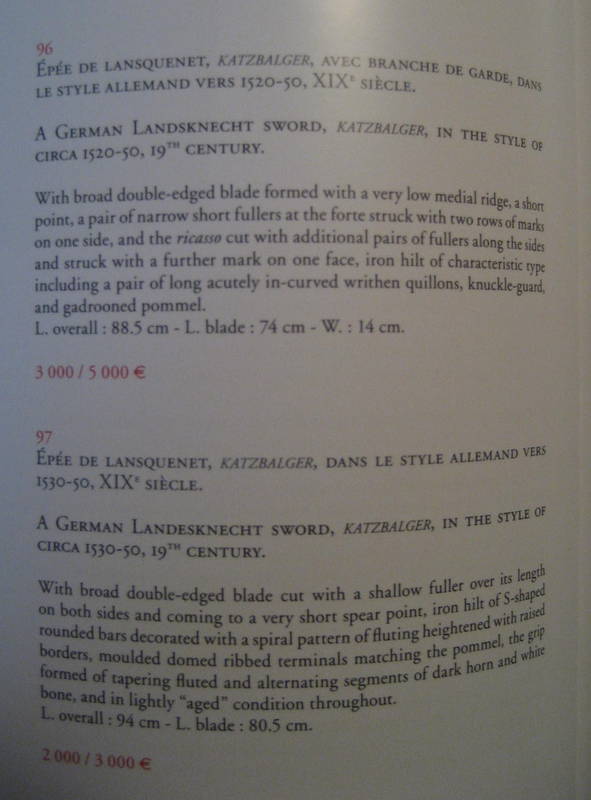 to make life easy, a probably 19th century katzbalger sold as a 16th century one by Sothebys. and a probably 16th century katzbalger sold as 19th century by Czerny (black background).