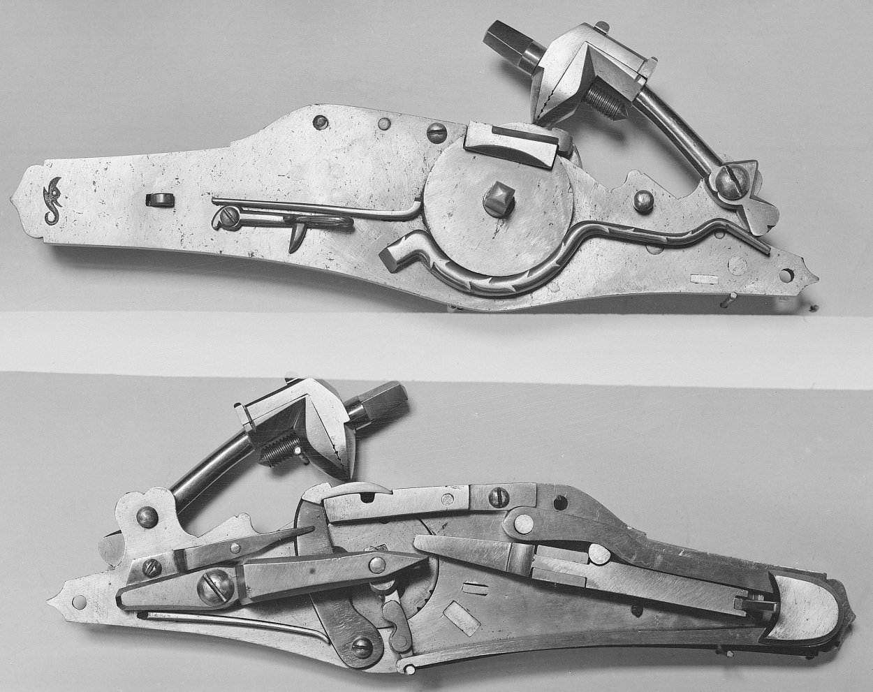 It seems from about 1535, and certainly by 1550 the wheelock in Germany had achieved all its classic features . But without , as far as I am aware much evidence of a development stage. In contrast , in early Italian wheelocks , we see a much wider range of solutions to problems that look more like a developing idea. Such as single locking bars (Da Vinci ) , matchlock style slot in wheel pancovers, exposed mechanisms etc.This is not a who invented the wheelock argument but it might be an argument for independant lines of development .The question was whether we should regard these Italian locks as being earlier than the earliest known German examples or simply that the Italians did things differently and for whatever reason were slower to adopt more mechanically sophisticated (and safer!) solutions. And yes , their is I think a simple theory why push button pan covers might have been considered a desirable neccesity on some classes of firearm and an optional extra on others.... |