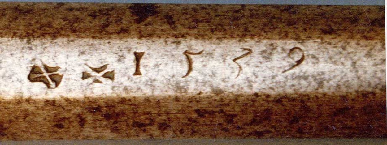And a close-up of the marks and the date 1539 - cf. the way the cyphers on the Nuremberg barrel '1537' (now in Graz) are struck!