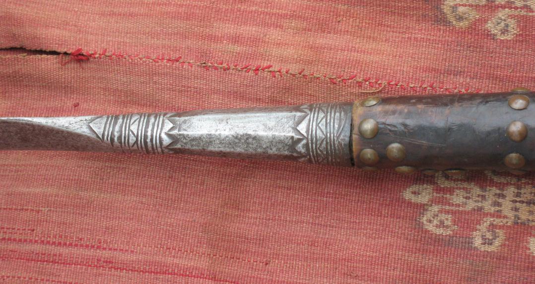 Here is a close up of the decoration. It does indeed remind of crowns on Atjeh weapons, but not more than that. The style and execution are very different from the atjeh weapons I know. Best regards, Willem |