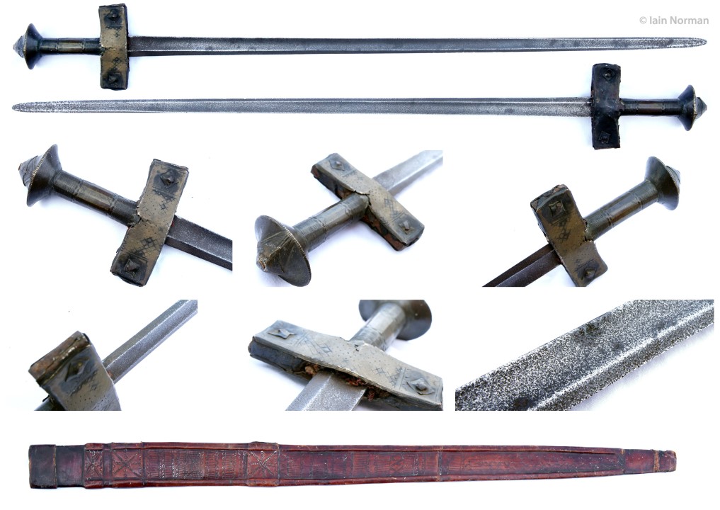 This Taureg takouba sword is from Ebay. I found it unusual in that it had a native made modestly CURVED blade and the scabbard to fit it. I have never encountered a curved blade on a takouba. I am assuming after seeing several variations of curved blades used against them the Taureg experimented with one of their own.