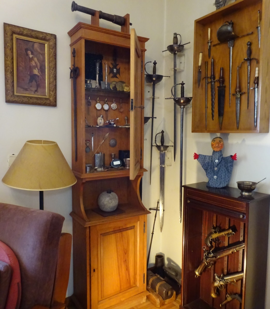 Here are some pics of my pirate/privateer/maritime collection. The weapons are all real, as are many of the items. That being said, the gems and coins, 'old maps' and broadsides are for looks. And yes, the skull is also only a prop-
