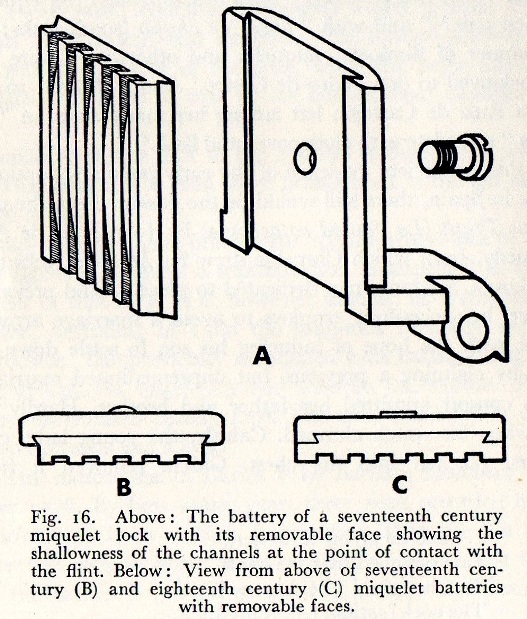 On the other hand, there are no traces of worn fluting in my lock frizzen face, judging by the smooth margins left. Also the battery tapering profile doesn't appear to be consistent with a 'classic' frizzen device.