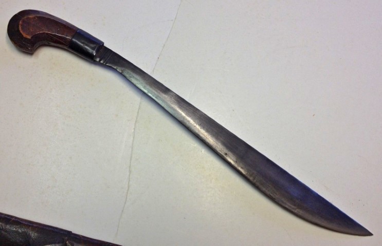 2. A basically straight 19" blade - IMHO it seems tough to call this a clip point; with such slender & straight blades the separation between bakutan and linamay seem to blur... BTW, what is the name of this traditional hilt style? Does the distinct scabbard style allow to narrow down its origin?