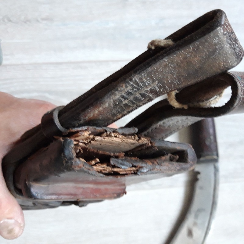 The butt plate was fitted over two posts protruding from the end of the tang, and peened over. You can see it better on one of Chiruwas, below.