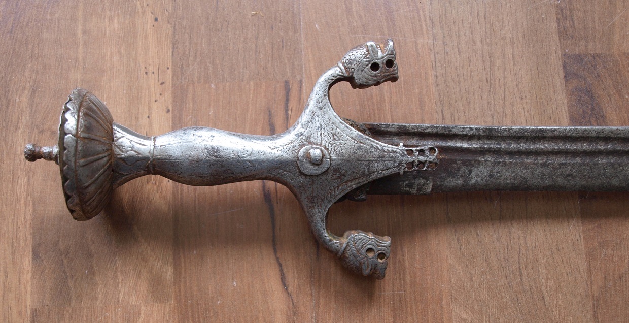 The paluoar, which is considered an exclusively Afghan sword with drooping quillons and the bowl type pommel, is often seen with the four point motif on the guard, and the pierced langet which somewhat recalls zoomorphic figures as on langets (the makara is typically known in north, while yali in south).