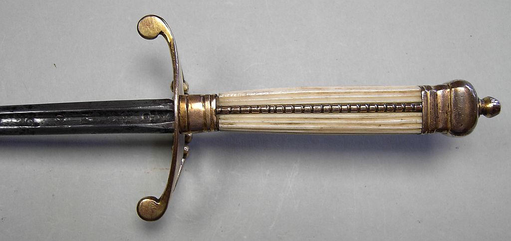 Here's my British example with ivory fluted grip, pillow pommel and fighting blade 9along with a stiletto for comparison-