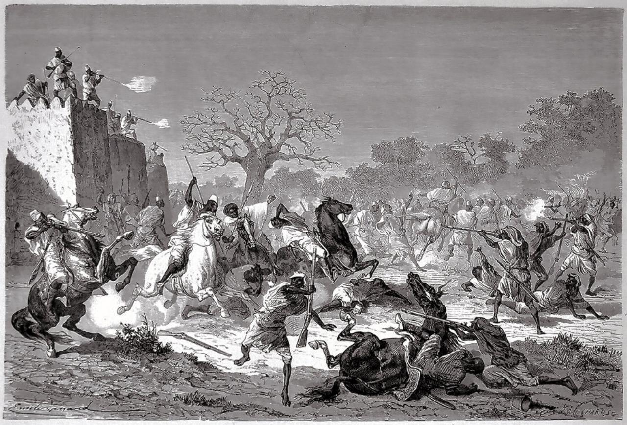 As an illustration, here is an engraving from 1868 depicting a battle between Bambara and Umar Tall's Fulani