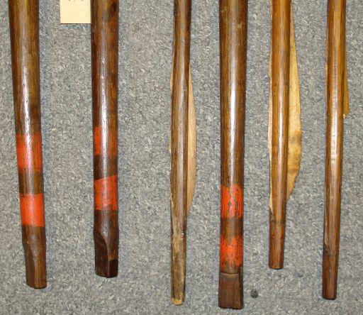 The bundle of quarrels bound with an old cord respresent a true sensation: The accompaying document of 1858 states that they are six of 10,000, found in a ruined section of the former city arsenal in Bamberg/Franconia. The text further cites that in 1435, 10,000 war quarrels were made in Bamberg and the city archive even records the names of the makers and what they got paid!!! A detailed image shows the singular condition of some quarrel heads retaining much of their original fire blued or blackened surface. Michael |