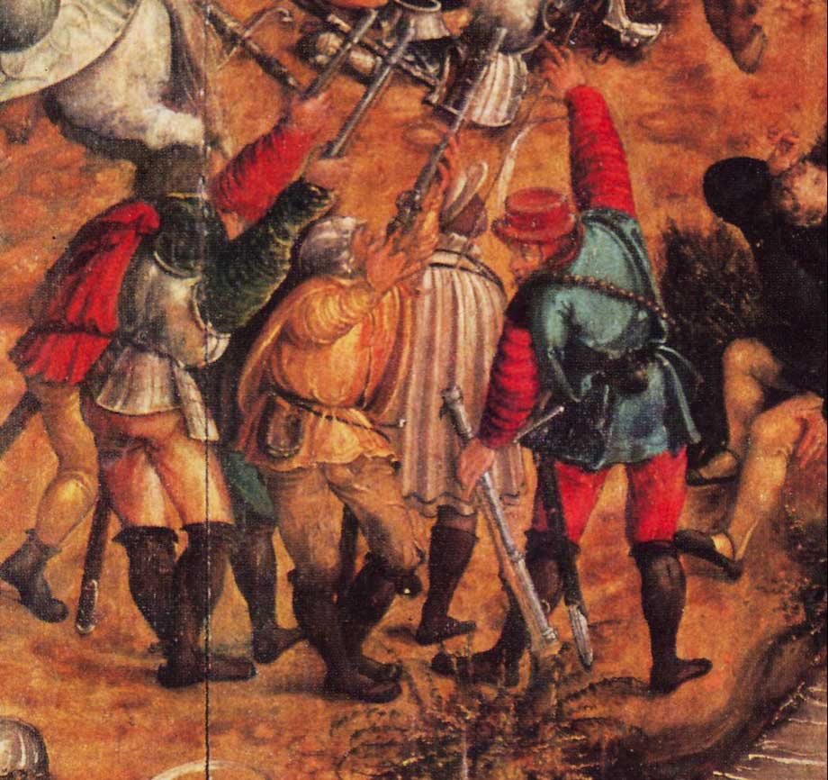 From my perspective, I always enjoy looking for symbolism and clues in art, which might relate to weapons and historic perspective of the times. I hope by noting some things I have noticed it will not deviate from the course of this excellent discussion, and simply stand for reference by those who might find interest in these other perspectives.