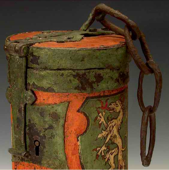 It contains more than 30 fine and rare leather pouches, purses, money boxes, wooden and iron caskets, padlocks and keys, all 300 to 500 years old, from two German private collections.
