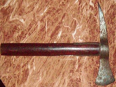 The hammer pole axes show the direction that some of these axes were taking in regards to losing the spike in place of a practical tool end. Civil War boarding axes were complete with heavy blades, hammer ends and nail-pulling slots (these started to appear around 1850).