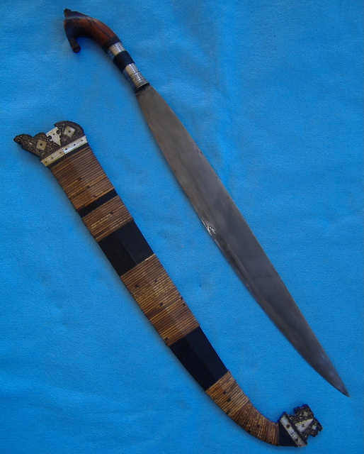 I've got some older 16"+ & a couple of 22" blades & at first I wondered if these were developed to use, in part, as a stabbing weapon. As you note, that is cumbersome to do. Although someone may train for a long time with the barung; I'm confident that the kris needs considerably more training then the barung to be effective. The old P.I. Soldier I talked to, most feared the kris & dismissed the barung. He stated no one ever survived the kris & everyone survived the barung. He stated the barung victims could be stitched in the field but there was nothing that could be done for the kris wounds. It would seem to be clear; a high-risk/suicide charge against armed men, several inches of steel matters. The barung seems like a weapon best suited as boat protection or boarding, dense brush fighting or daily defense carry. One of my 22" came from a WW2 vet that claimed he got it in 1945. So they were there for at least the Japanese. My guess is, their main purpose was for a effective slashing weapon in a high-risk/suicide attack for a young man that didn't need years of training. |