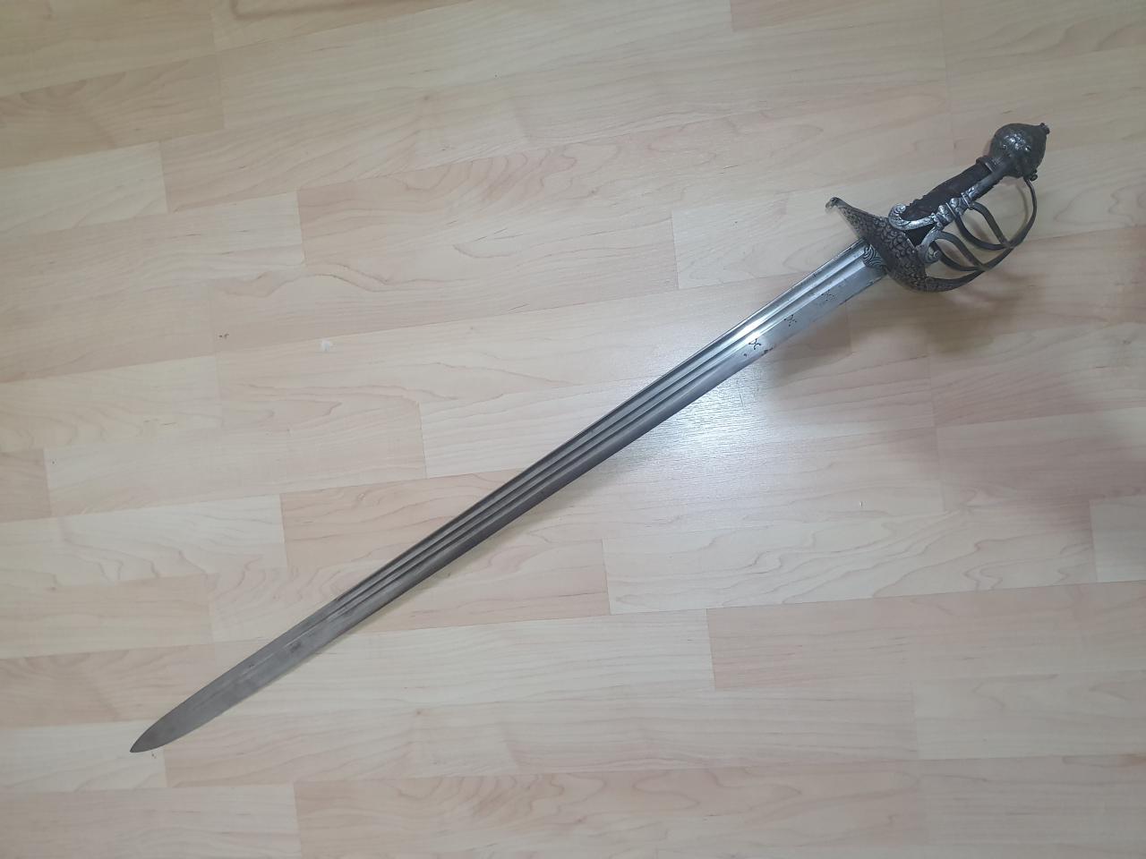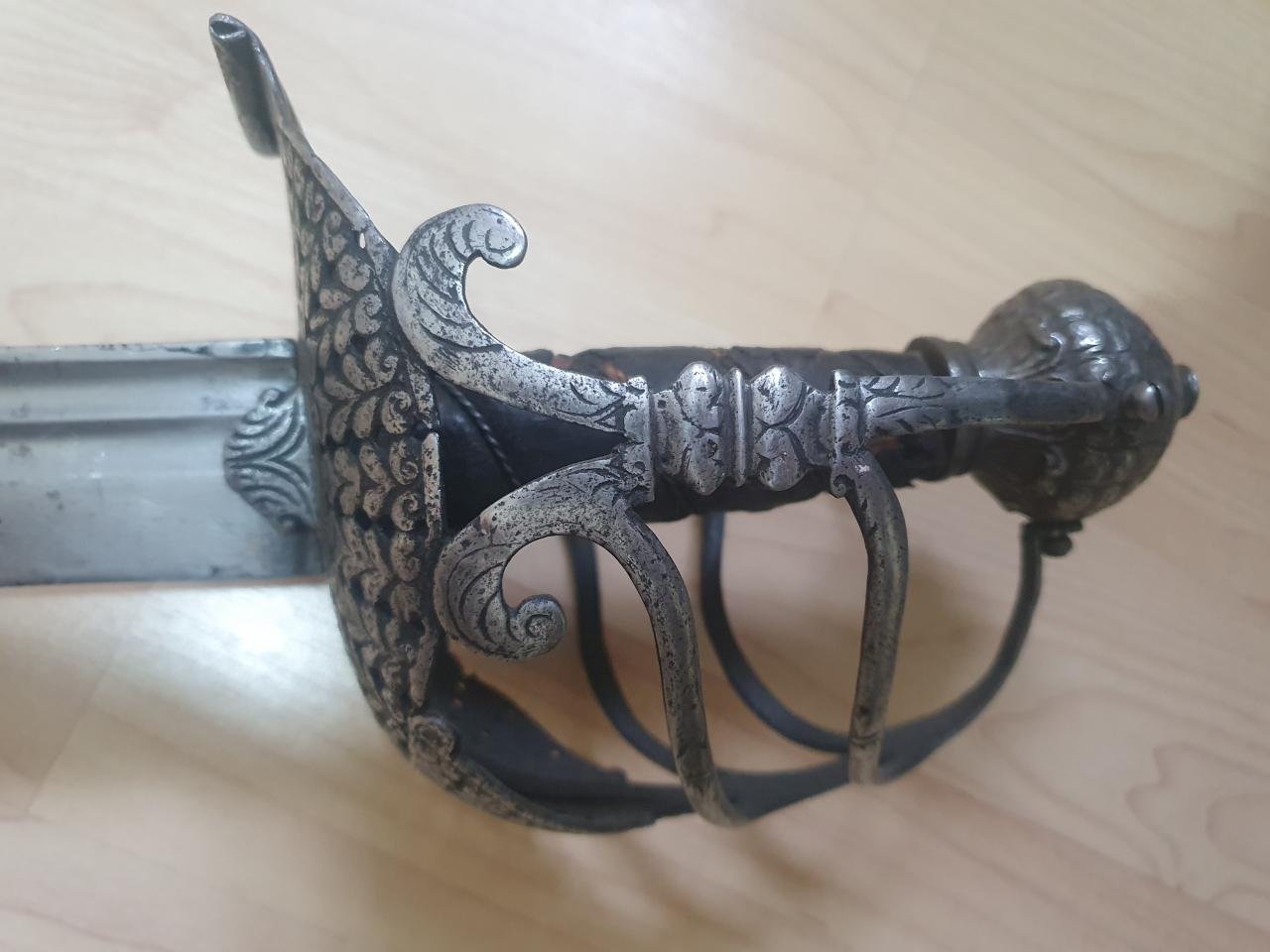 The style of hilt [shape] seems to survive longer in Germany, with a bigger focus on floral and other abstract designs on the hilt, whereas in England the hilt style went to those not unlike the English 'Walloon', often in brass.