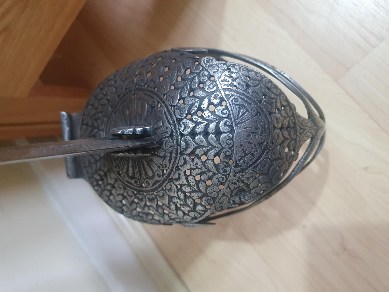 Triarii, there is no doubt the 'mortuary' style half basket hilts were produced in England, it is a question of elemental influences which presented in the design, in this case the thumb ring. As noted this was more recognized as a feature in Continental swords of Germany, Austria and in degree the Low Countries.