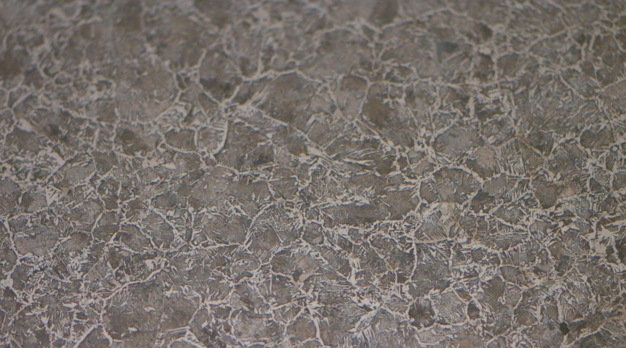 A section of the surface was cut (polished and etched) and examined micrographically. It is bloomery steel with a medium carbon content. The number of slag inclusions is rather low -> high-quality steel was used. No evidence of hardening could be found at the examined site. This is the rule rather than the exception for medieval swords. The Widmannstättsche structures indicate overheating during forging