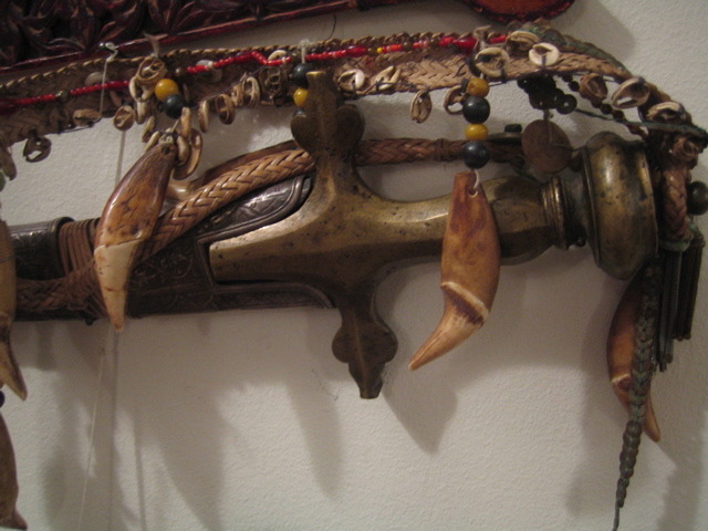 I see where you may mistake these swords as being Visayan. These examples may be parang naburs, but then again I'm not to familiar with those swords. And Batangas and Bicol has been brought up as a possible origin. In the past I have made references to the "bathead Batangas bolo." I've also posted a year ago when I was in Batangas that those swords are possibly from Bicol instead. http://www.vikingsword.com/vb/showthread.php?t=2818 http://www.vikingsword.com/vb/showthread.php?t=594 So here's some food for thought. The first sword is from Bicol. This sword was given to me by my Uncle several years ago and I always thought it was from Batangas. Last year when I was in Batangas, my cousin told me that it was originally from Bicol. The most prevalent figural hilt form in Batangas is the horse, but the bathead form can be found there as well. Most scabbards in Batangas are made of tooled leather. The scabbard on this example is wood with a flared toe...similar to certain Visayan scabbards. The other two swords are very similar, but with different blade styles. They are also from the Philippines most likely from Bicol. One now belongs to Ibeam. All three have bathead hilt and similar scabbards. The blades on the swords in question do not look like any of these examples. Study the differences and make comparisons....maybe you'll find your answers. |