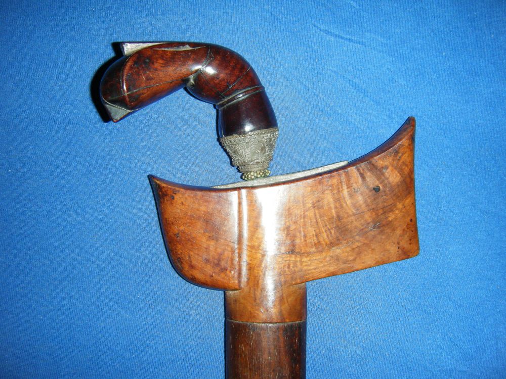 It is not a word for word translation, some of it has been précised, and that which has been translated is not precise and absolutely correct, it is only translated direct in the form I understand it without the necessary fine tuning, and as fast as I could type it. But it has the guts of what has been said. It starts by giving names used for the keris in various places, then it tells the first places and times when the word "keris" was first appears. It states that the keris was already fully developed by the time of Majapahit and it spread from Majapahit to other localities. Sumbawa is occupied by two ethnic groups:- those in the Eastern part of the island who are the Mbojo, and those in the western part of the island who are the Sumawa. The keris of both ethnic groups are indistinguishable, they resemble the keris of Southern Sulawesi, that is, Bugis keris. Thus it can be deduced that the keris entered Sumbawa by way of the north, from Sulawesi. In the village of Penana near Bima in the eastern part of the island there were still pandai besi into the 20th century who could make keris. Following is a rough translation of text specific to keris Sumbawa:- Form and Style of Sumbawa Keris PARA 5 The length of Sumbawa keris is only about 34-51cm, thus they are shorter than keris Jawa which are 49-51 cm. Keris Sumawa and keris Mbojo are similar. Keris with a high degree of ornamentation are called keris tatarapang. Keris tatarapang owned by the Bima Sultanate are named Lasmpraja, owned by the Dompu Sultanate are named Balaba; whilst owned by the Sumawa Sultanate are named Baruwayat. With this type of keris the entire wrangka is covered in embossed silver or gold. In the Sumbawa region especially the Kabupaten of Bima there are also keris that are a normal length that are called Saronggi. There are also big keris that are called Sunda, that are worn by employees of the Bima Sultanate in previous times. The pamor of Sumbawa keris doesn't have much variation and is unclear. It is thought that keris Sumbawa use pamor from Sualwesi South , not pamor from meteor but from iron. PARA 6 The blade of Sumbawa keris has two forms:- straight and waved. Number of waves is from 3 to 15. Usually the pamor motifs are the same as in Jawa. There's a bit of difference, for example, pamor kalisu in keris Bima is known as pamor mailut in Jawa. PARA 7 Hilts of Sumbawa keris have the shape of a wide tail, a birds head, and a snake, normally made of wood, ivory or bone, that are used by ordinary people. Hilts in the form of Bima are only used on keris tataparang held by the Sultan of Bima. Hilts in the form of the raksasa Niwata Kawaca are only used by guards in charge of border security. Hilts in the shape of Garuda are used by officials of the Manggapo Dongo sect , whilst hilts of naga form are used by officials of the Bilmana sect, and hilts with the form of people sitting are used by religious leaders. PARA8 Mendak and selut are made from soft metal such as gold, silver, copper, brass.Mendak are shaped round like a ring and placed between the ganja and the hilt. The selut is round and smooth, encloses the base of the hilt , and meets the mendak. Keris Sumbawa use mendak that are one with the selut, which are named kili-kili, that are ornamented with the pattern of tumpal, sulur, bunga, geometric, made with the technique of soldering or embossing. PARA 9 In olden times keris ornamented in gold could only be used by palace nobles, and ordinary people could only use ornamentation from silver. Ornamentation of Sumbawa keris covers the entire scabbard The function of keris for the people of Sumbawa. PARA 10 In Bima and Dompu which are the same ethnic group and which occupy the eastern part of the island of Sumbawa, there is a tradition to present a keris to men who have been circumcised. This tradition is named compo sampiri, which still continues until now. A child who has already been given the keris (compo) and his elder brother (sampii) the say :- "I am a brave man who is prepared to guard and defend myself PARA 11 For the people of Sumbawa who still fulfil religious and spiritual rituals , keris are still used, for example for the ceremony of circumcision and for weddings.(The keris completes the dress.) The way the keris is worn in Sumbawa is at the waist at the right side, and is called salongi in Mbojo, and bagadu in Sumbawa PARA 12 In the Sultanate of Bima keris tatarapang are a symbol of the power of the Sultan, so that when the power of the sultanate is transferred the symbol is to transfer the keris. Keris are also used as a symbol of social status by way of the hilt or ornamentation. THE FOLLOWING SENTENCE I HAD DIFFICULTY WITH:- Pada upacara sorong serah aji karma, pembayu membawa salah satu unsure arta gegawan berupa keris yang disebut kao tindoq (kerbau tidur), yang melambangkan keamanan dan ketentraman. I understand this as :- In the sorong serah aji karma ceremony, the first born carries a weapon in the form of a keris which is called kao tindoq (sleeping buffalo) which symbolizes safety and calm. My wife, who is Indonesian, understands the sentence as:- In the sorong serah aji karma ceremony, (a particular type of Kraton servant) carries a weapon in the form of a keris which is called kao tindoq (sleeping buffalo) which symbolizes safety and calm. We could both be wrong, as this sentence is not written in standard Indonesian, nor in Javanese. PARA 13 Keris also have the function of providing magic power and spiritual power, also to help raise self confidence, cure sickness, protect against pests, protect against interference from magic or evil spirits, also to help find good luck. PARA 14 Because the people of Sumbawa still hold strongly to tradition and do not consider this to be in conflict with religious standards, the keris still has a place in the complete dress, and is considered essential for formal dress. Keris are regarded as an inheritance from ancestors which are able to be valued as an