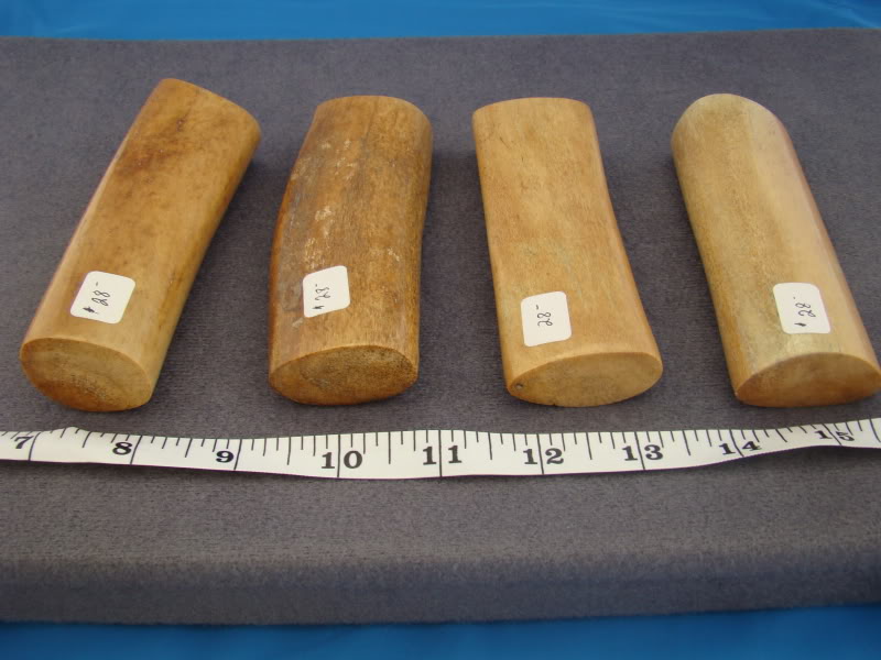 I noticed the different in colours of "antler" handles before, but I always thought it might be that the antler had different colours by itself? I've seen them by very "teeth"white to very darkbrown. A friendcollector told me once that the whiter pieces have seen a lot more sun as the pieces with darker handles which probably were more used in the forests as in open area where sunlight was shining.....(but I don't know if this is true and what his source was for this statement). Let's suppose this would be sea cow, from which part could it be than? Is there also seen a difference in material/structure, besides of the colour? Maurice |