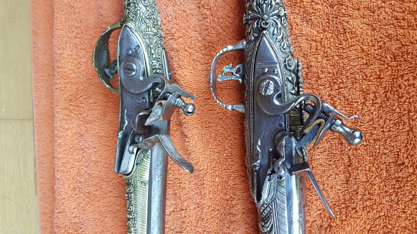greetings , silver-stocks and niello , locks and barrels probably from brecia. 56 and 58cm long. Iskender