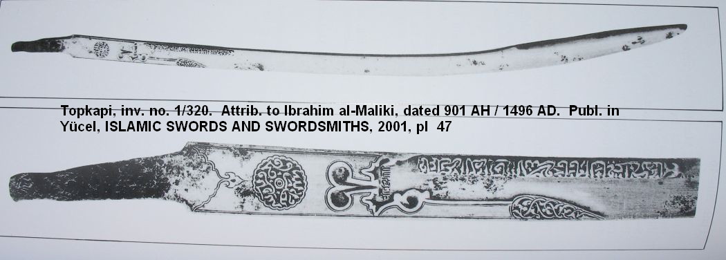 The matter of specific shapes, especially whether the long side is on the edge or dorsal side of the blade, is interesting. I tend to put more confidence in what the surviving objects show. Works of art are a valuable tool for the arms historian, but there is always the consideration of artistic license. Especially in cultures and eras in which fidelity to minute details did not approach the standards set by the figurative art of Renaissance Europe and subsequent eras (at least until our modern age of abstract art!). Which is not to dismiss it entirely; it's just that we must be prepared, on occasion, to take elements cum grano salis until we have the occasion to let surviving examples of the objects speak for themselves. The tunkou or its equivalent on Ottoman arms is worthy of further study. I will resize some images for my next post to show that a survival of the original concept (edge side longer) can be seen on some Mamluk and early Otto saber blades. But then we have the case of yataghans, on which a similar component is oriented the other way -- long side along the spine. I wonder if we should consider these disparate designs as coming from the same origin, or perhaps growing from disparate roots. Let's look at proto-yataghan blade shapes (recurved, single edged) from earlier cultures to see if antecedents exist for this specific component. Do you know of any such recurved blades being made and used in those same Eurasian nomad cultures that gave us the saber and pallasch? I recall seeing something like this in a Soviet publication on the Yenisei watershed finds, but need to dig it out and check. You are perhaps more familiar with this material than I am! As re the Japanese habaki, which is the same length on both edge and dorsal sides (with a straight or slightly convex frontal contour), perhaps we need to regard that as an independent development, sprouting on its own on Japanese soil. Or perhaps sharing a common origin with the same feature on Korean single-edged swords, since the two cultures do seem to have common cultural-political-linguistic threads in archaic and early medieval epochs. Another feature which distinguishes the habacki from its continental counterpart is its distal (side-to-side) dimension. There is a notable taper, from rear to front, in thickness. Also, many of them tend to have a lateral "step" from having each face constructed of two pieces of metal, so that the posterior portion is actually two plates one atop the other. A tunkou lacks both these distinguishing characteristics. |