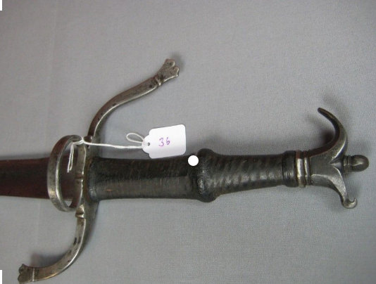 The interesting raised rib in the grip reminds me of zweihander swords of the period, and it is tempting to wonder if this may have been en suite. We know that rapiers often came in sets in this manner with alternate hand daggers (typically termed left hand daggers ). As far as the singular use of the well known form seen here, as Fernando has noted, surely we have seen this instance before, in fact many times, but finding it will take some of the sleuths here. I know it is possible as I am always amazed at how some of the guys here find stuff posted some time before, Rick and Fernando himself are the two that come to mind in pulling up these exemplars. Ray, actually that is a well placed observation, that perhaps the mark (though with some commonality it seems in the makers community) might have the same origin as some of the multiple groupings. Again, as we know these marks were not to a specific maker, possibly their use in number or varied configurations might have been peculiar to a certain one. With many commonly known devices found on blades, we know that certain ones were favored by certain makers. In the case for example of Wundes, the use of a kings head was known to be a mark used by him and his family. There are varied examples of blades where the same kings head is punched in repeated number in groupings, sometimes as many as five or more. This seems a prime indicator that number of marks, of the same kind, and in varied configuration, could have some esoteric significance known in the time, but unrecorded and now lost. It is yet another of the conundrums that bring sleepless nights to obsessive researchers such as yours truly