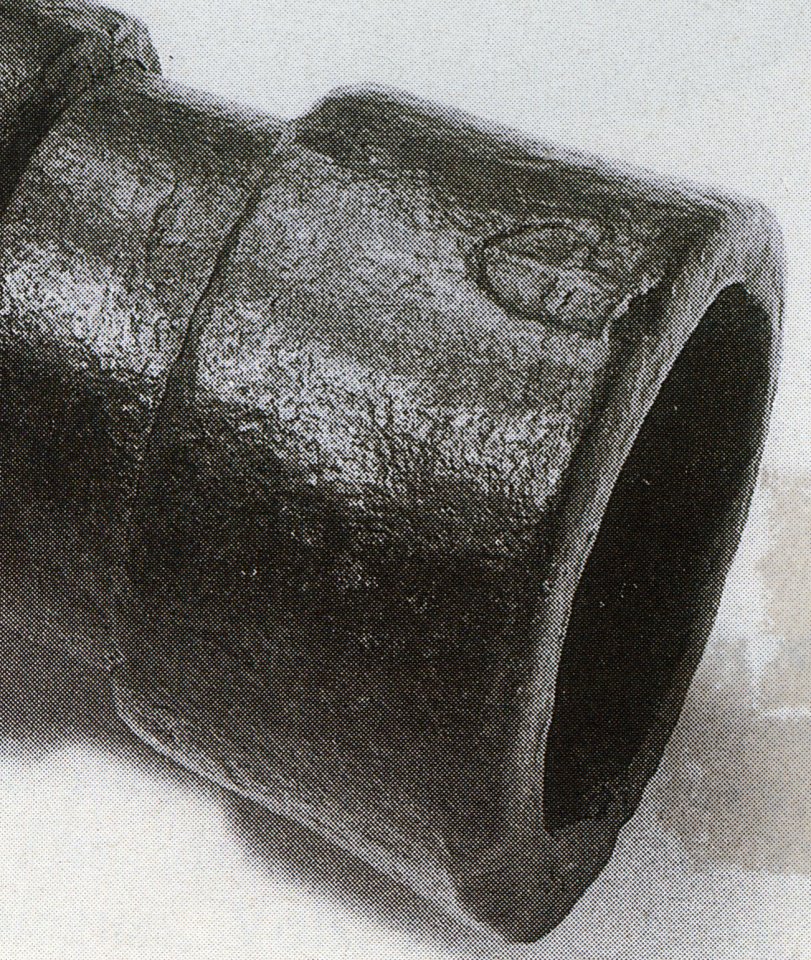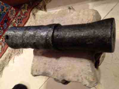Great minds think alike (and so do ours! )I had the same impression when first looking at the pictures but the staff of the auction house assured me that the barrel actually consisted of one singular piece throughout. I think the caliber could be about 30 mm. The balls at that period of time were most probably made of stone; I got a few in my collection. That's where the special name of this kind of earliest guns came from: stone gonne (German Steinbüchse). Best, Michl |