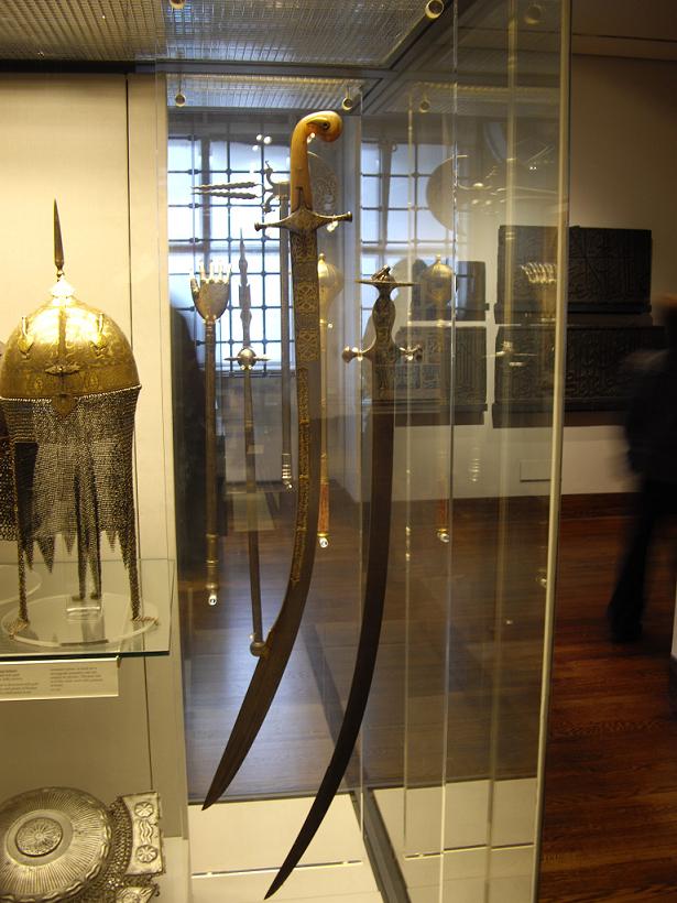 Wow, gotta love the Islamic arms in that museum!! Love how the inly on the kilij blade was still in mint condition and raised well above the surface. The cross guard seems like it may be Persian and the hilt definately Turkish.