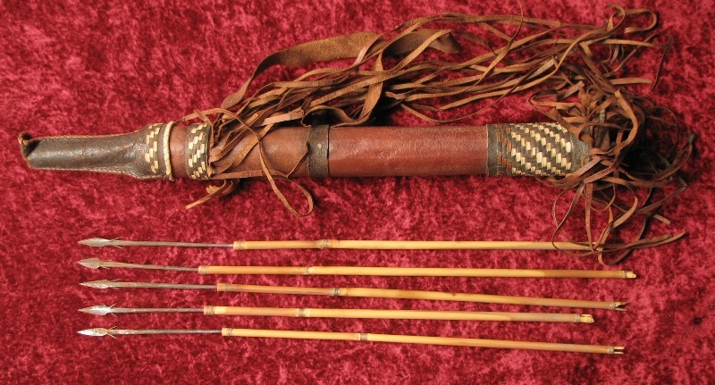 Interesting video, I've made a few bows over the years-nothing Robert Hardy would smile at!- and had great fun in the process. I've found a certain snobbery within the Uk archery fraternity regarding any bows from Africa, the general opinion that they are under powered and made of poor wood. Mention Japanese, Turkish or Indian archery and its all smiles. But africa seems the sad cousin, so this post is a good thing. The picture below is one of the most common types of quivers found in the Uk, and these are normally described as Manding in origin.The bows that are often with the set look rather pathetic so perhpas for the traveller? I'm not sure. I will try and find some more pics of other bows etc |