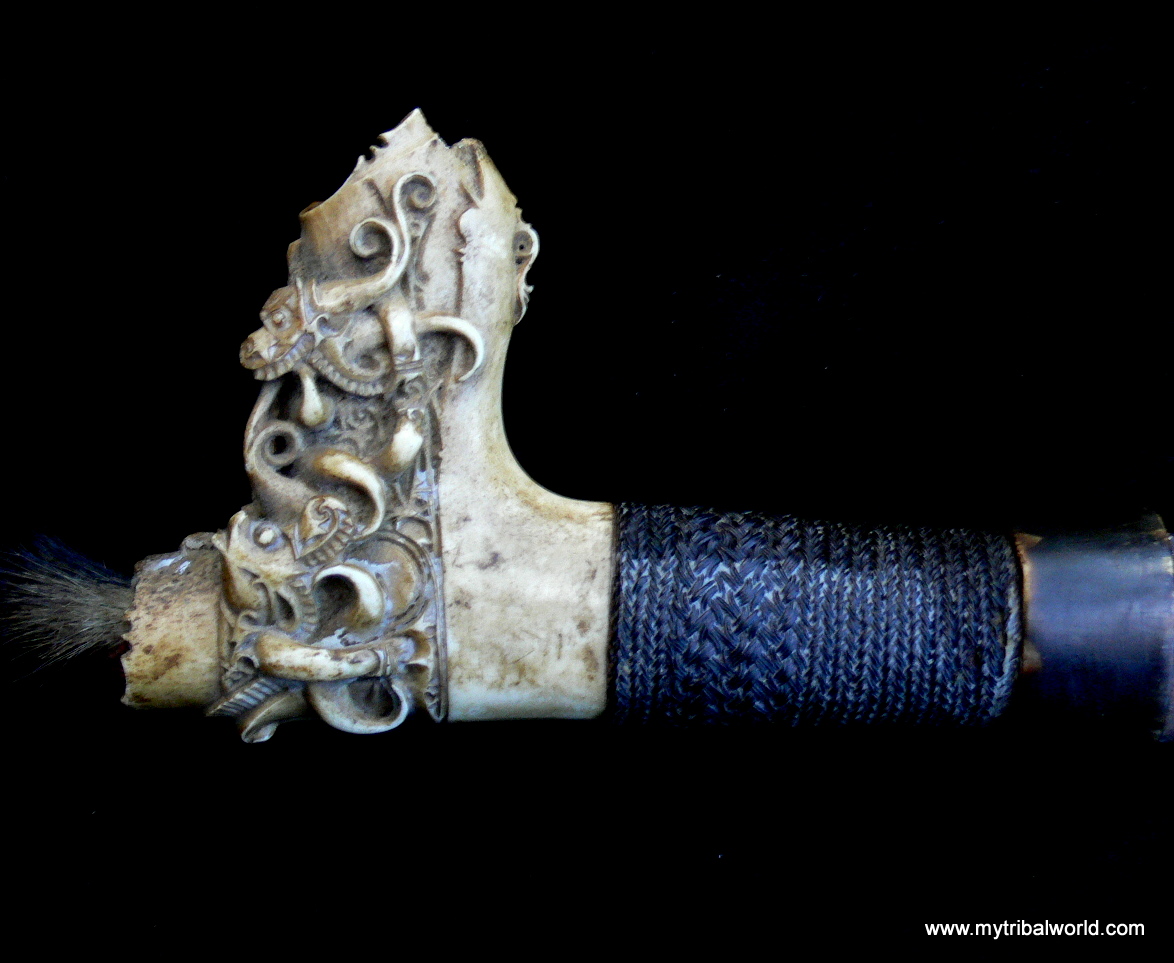 For such possibly older unusuall examples we must be carefull with tagging it to a certain tribe. Migrations,trades and headhunting raids hasn't made it easier to determinate such pieces. Fascinating is it too see after seeing some hundreds of mandaus that there are still examples that we haven't seen before.It tells something about seemly endless artistic skills of the people who create them.