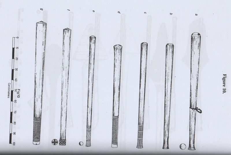 It appears that I offended someone.....not intended....regarding my comment about the short pole club perhaps being that of which is described in what some consider the (Fijian Bible) Clunie's Weapons and Warfare,as well as reading this account in other publications. Historical observations are just that,and incidentally,my brain is never turned off......and just what is religious text? Limited historic observations at best.Yes,one can imagine that the Fijians were indeed skilled warriors,with the many weapon styles,and the many horror stories that were told,which are also historical observations.The same observations,and documenting made by which most of this information is acquired,including your observation on sport,contests as entertainment tournaments, light protection and disputes within a Fijians own chiefs local.What else does one have? Of course they were proficient at making clubs to suit what ever task was required. These clubs were primarily made to dispatch your opponent quickly.They claimed to be of a cannibal class,because this was their culture,and they allegedly liked it.It was said that during the early years of Pacific Whaling,and European voyaging,Fiji,as well as the Solomon Isles were avoided,as having the potential of being a dinner guest.The Fijians were and are very superstitous,and many items were reserved for the chiefly class,which was a wide practice thought the Pacific region.Many things that were considered sacred Chiefly items were forbidden/Kapu/Taboo for commoners to posses.If found to possess such a piece...say a whale tooth.one may well have a neat little hole punched into his skull,i.e Totokia. In fact the smaller pole clubs,were allegedly a chiefly thing as well,as were Totokia,Whale Tooth Ivory,fly whisks,forks,etc... All of these things have been documented.Most documented by Missionaries attempting to change what they considered a Savage culture.One must remember that without observation,and documention,many of these cultures have disappeared,as they had no known written language,and were only able to pass the History from generation to generation,by way of song,chant,or verbal stories that often get lost,or diluted over time.often with the aggressive tactics of the Missionaries.And of course the knowledge/observations of foreign writings,and journals that were kept by those making these keen observations,are what remains,aside from stories.Take a good look at what happened in Hawaii,just to mention another very Westernized affected culture.I reside in the Pacific region,and have several Fijian friends,that know very little about Fiji,their culture,and the past,and of others that have a great bit of knowledge of the past.Many were taught to repress the past history,cannibal history,along with the brutality,that was pervasive in the Pacific Region,and headhunting,and cannibalism is not only reserved to the Pacific Region.Remember they loved having guests,for dinner!!! It was not uncommon for the wife/wives of a recent deceased Chief,to be killed,so they could follow him into the afterlife.Sorry if you were put off by the comment...not intended.I like the staffs also,and very,very familiar with martial arts/stick fighting.All the Best